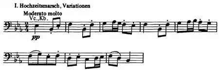 - The first movement is a Wedding March (Hochzeitsmarsch) followed by a set of 13 variations. While variations are commonly found in symphonies, it is most unusual for them to appear in the first movement. The variations offer constant changes of tempo, meter, rhythm, mood and harmony, and display his fine craftsmanship.[3]