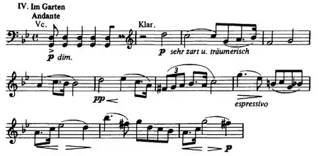 - The fourth movement, In the Garden (Im Garten), is slow and lyrical, its middle section moving to E-flat minor.