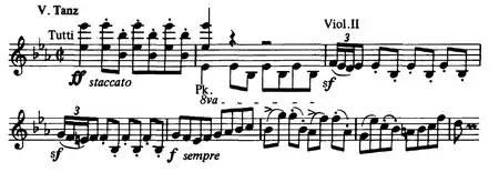 Rustic Wedding Symphony, Op. 26 (Ländliche Hochzeit) is a symphony in E-flat major by Karl Goldmark, written in 1875,[1] a year before his renowned Violin Concerto No. 1. The symphony was premiered in Vienna on 5 March 1876, conducted by Hans Richter.[2] Johannes Brahms, who was a frequent walking companion of Goldmark's, and whose own Symphony No. 1 was not premiered until November 1876, told him "That is the best thing you have done; clear-cut and faultless, it sprang into being a finished thing, like Minerva from the head of Jupiter".[3] Its first American performance was at a New York Philharmonic Society concert, conducted by Theodore Thomas on 13 January 1877.[3]