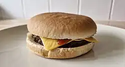 In 2019, with a target audience of 18- to 24-year-olds, Kepak launched its first Rustlers vegetarian burger, a Moroccan felafel patty, named on the packet as "Moroccan vegetarian burger, carrot & coriander falafel with mango chutney and yogurt and mint sauce".[8][9] In November 2021 in Tesco, Tesco One Stop and Booker outlets,[9] Kepak launched the Rustlers Meatless Maverick, a meat-free burger.[10] However, although the burger is made from pea protein, a cheese slice is included in the pack, so that the package is not wholly plant-based or vegan. It was designed in 2021 to mimic the brand's Quarter Pounder SKU, and to be sold at the same price as the Rustlers original meat-based burgers.[9]