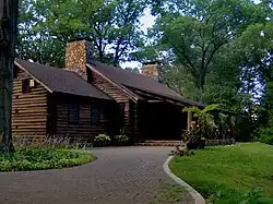 - Log Cabin - The Log Cabin was built in 1936 by the Works Progress Administration (WPA). Today it is actively used for receptions and other events in the gardens. The log cabin overlooks Westons Mill Pond, a section of the Lawrence Brook.