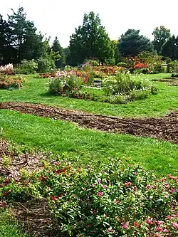 Rutgers Gardens (130 acres) is the official botanical garden of Rutgers University, located on the outskirts of Rutgers School of Environmental and Biological Sciences, at 112 Log Cabin Road, North Brunswick, New Jersey, 08902. The grounds include 60 acres of designed beds, specialty gardens, tree and shrub collections, lawns, and walking paths, and the adjoining 70-acre Frank G. Helyar Woods.[1] The gardens are open year-round, without fee, and feature horticultural collections arranged in garden settings. In 2017 it was granted landmark status by the American Society for Horticultural Science.[2]