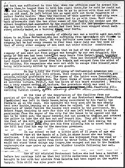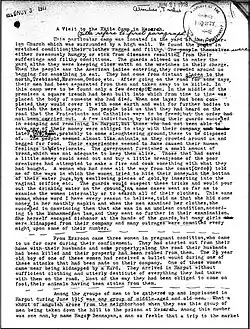 It is too harrowing to try to describe the outrages committed day by day for weeks, on these thousands of deportees along the road, then for most of them to be killed outright-perhaps by drowning in a river or to drop dead from hunger, thirst, and fatigue.[3]