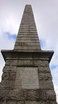 The monument stands on Boreland Hill, between Anwoth and Gatehouse of Fleet.[1] It is an obelisk, 56 feet (17 m) high, made of polished granite[2][3] and mounted upon a square, corniced base.[1] On its south face, it bears an inscription commemorating Samuel Rutherford, which reads: