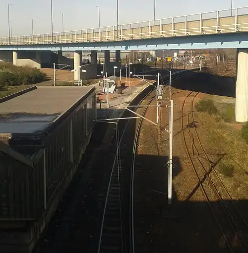 During 2010, the M74 extension included the motorway flyover at the north end of the platform.