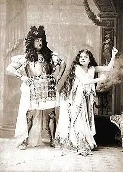 Barrington left the company again when Utopia closed, taking over the role of Dr Montague Brierly in the Hall, Greenbank and Jones musical, A Gaiety Girl (in 1894) produced at Daly's Theatre by George Edwardes and on tour.[47] Next, he appeared in Gilbert and Carr's His Excellency (1894–95)[20] creating the role of the Regent. The stage was dominated by a heroic-size statue of him in the role.[48] Barrington also wrote and directed a one-act operetta, A Knight Errant, with music by Alfred Caldicott, which played as a companion piece with His Excellency at the Lyric Theatre. At Toole's Theatre, he played John Rimple in Thoroughbred, by Ralph R. Lumley, in early 1895. J. L. Toole had originated the role but took ill and was forced to retire.[49] Barrington also played in some German Reed Entertainments, including a revival of Happy Arcadia at St. George's Hall in 1895, starring Fanny Holland, and toured with the German Reeds.[2][50]