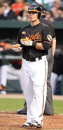 He began 2011 with the Norfolk Tides of the AAA International League and was called up to the majors for the first time on May 20, 2011.[1] He had one hit in four at-bats in his debut, with his hit being a single to left field off Jason Marquis of the Washington Nationals. In 29 games with the Orioles, he had 25 hits in 89 at-bats for a .281 batting average.