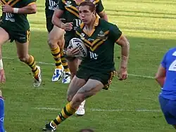 Ryan Hoffman (born 26 January 1984) is an Australian former professional rugby league footballer who played in the 2000s and 2010s.[4] He played for Melbourne Storm and the New Zealand Warriors in the National Rugby League, and the Wigan Warriors in the Super League, as a second-row.