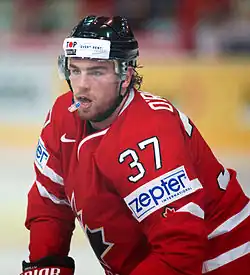 The following year, O'Reilly was selected as captain of Canada for the 2009 IIHF World U18 Championships.[51] In six games, he contributed with five points before finishing in fourth place after losing 5–4 in the bronze medal game against Finland.[52]