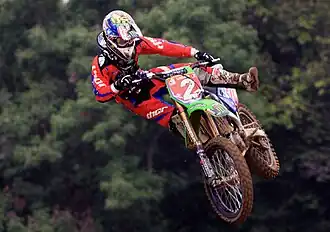 Ryan Daniel Villopoto (born August 13, 1988, in Fortuna, California[1]) is an American former professional motocross and supercross racer who competed in the AMA Motocross Championships from 2005 to 2014; a four-time 450cc AMA Supercross Champion, a two-time 450cc AMA Motocross Champion, a three-time 250cc AMA Motocross Champion & a one-time 250cc West Supercross Champion. He was also a member of the winning USA team at the 2006, 2007, 2008 & 2011 Motocross Des Nations.[2][3]