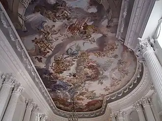 The residence was built by Giuseppe Simon Belotti from Lugano, at the end of the 17th century. Not only was he an architect but also a manager of stucco workshops and a supervisor of decorative works made by Italian plasterers and sculptors. Belotti designed the Leszczyńskis' Palace in 'palazzo in modo fortezza' style, following the example of Poggio Reale by Sebastiano Serlio (Serliano). Another Italian artist who settled in Poland, Michelangelo Palloni from Florence, decorated ceilings in the palace in Rydzyna with splendid frescos. At the beginning of the 18th century, Pompeo Ferrari came to Rydzyna. He was a talented architect from Rome, laureate of the St. Lucas Academy. He settled here for the rest of his life and after his death in 1736 was buried in the parish church. Pompeo Ferrari designed the Rydzyna palace reconstruction which was the beginning of the famous urban planning of Rydzyna, whose aim was to join the palace and the town in a harmonious composition. Apart from that he was a designer of other magnificent buildings in Wielkopolska (Great Poland). Other artists under the artistic patronage of the Leszczyński family were three brothers Catenazzi from Morbio Inferiore in Mendrisiotto, (in Ticino, Switzerland). The splendid heritage of the past has been carefully protected in Rydzyna, where people always remember creators of beauty.