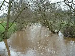 The upland streams of the Rye and its tributaries have powered water mills for centuries. There were three mills at Pickering and others at Kirkby Mills, near Kirkbymoorside.[3] A mill at Bransdale is owned by the National Trust, though not open to visitors. Rievaulx Abbey was established on the banks of the Rye on land given by Walter l'Espec of Helmsley and took its name from a literal translation of Rye Valley from the French. The monks of Rievaulx diverted the river away from the abbey buildings.[4]