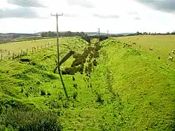 The nominal junction between the Caledonian Railway and the Glasgow and South Western Railway was at the county boundary at Loudounhill Station. The closed line was used to store hundreds of damaged railway waggons that were awaiting repair.[4]