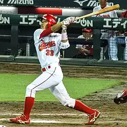 ![]() Kikuchi with the Hiroshima Toyo Carp | |||||||||||||||||||||