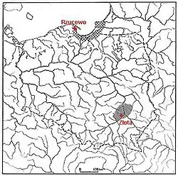 The Rzucewo (also Rutzau or Bay Coast culture, from German: Haffküstenkultur, 2700 BC)[1] was a local archaeological culture of late Neolithic. It centered at the coast of the Bay of Gdansk and Vistula Lagoon[2] and extended north to the Curonian Lagoon and up to Šventoji settlement in Lithuania.[3] It is either named after the adjacent bays or after an archeological site in the village of Rzucewo near Puck.