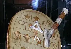 The motif was chosen with the poem "Päiven Pārne'" ("Sons of the Sun") in mind. The poem was written down by the South Sámi Protestant priest Anders Fjellner in the mid-1800s from a joik rich with elements of Sámi shamanism.[7] The poem describes the Sámi as "sons and daughters of the sun",[5] through the union between a female "giant" (an unidentified mythological entity) who lives in a "House of Death" far in the North, and the Sun's male offspring with whom she elopes.[7] The Sámi are also referred to as "offspring of the Sons of the Sun" in "Sami soga lavlla," the Sámi anthem.[5]