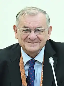 Sándor Lezsák (born 30 October 1949) is a Hungarian poet, teacher and politician. Between 2 April 2012 and 10 May 2012, Lezsák was temporarily the Speaker of the National Assembly of Hungary, as the resignation of Pál Schmitt led to Speaker László Kövér becoming acting President of Hungary. Once again Lezsák 26 February 2024 to 5 March 2024 temporarily became the speaker of the National Assembly, as the resignation of Katalin Novák led Speaker László Kövér becoming acting President of Hungary.[1]