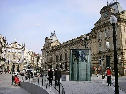 São Bento is an underground light rail station on line D of the Porto Metro system in Porto, Portugal. It is situated in front of the São Bento railway station, one of Porto's main railway stations, from which it takes its name. Immediately to the south of São Bento station, the line emerges from its tunnel in order to use the upper level of the Dom Luís I Bridge to cross over the Douro river.[1][2][3]