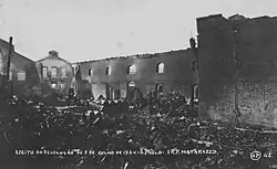 Starving, working-class families noticed the lack of policing.[177][178] On 9 July, a wave of popular looting of commercial establishments began in the farthest neighborhoods (Mooca, Brás and Hipódromo), later reaching the center.[179] The city's government recorded 61 looted establishments, 6 looted and set on fire, and 6 robbed throughout the month.[180] Almost all shops, emporiums, and warehouses were attacked.[179] The most affected companies were Sociedade Anônima Scarpa, Matarazzo & Cia, Ernesto de Castro, Nazaré e Teixeira, Motores Marelli, Maheifuz & Cia, Moinho Gamba, Moinho Santista, Reickmann & Cia and J.M. Melo.[181]