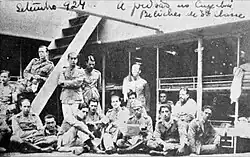 The clandestine conspirators worked civilian jobs under false identities.[g] To enlist new allies, including officers on active duty, they resorted to their relatives and contacts built in the Military School of Realengo and in the barracks, prisons and neighborhoods.[15] It was normal for the rebels to be colleagues at the Military School, and many others met each other when arrested.[66] Leaders traveled to barracks across most of the South and Southeast to build up support.[67][68][69] The revolutionary central committee had a plan to enlist officers, which in the case of São Paulo began to be implemented in August 1923.[70] The conspirators arrested in Rio de Janeiro found considerable freedom and corresponded with their comrades in São Paulo.[71]