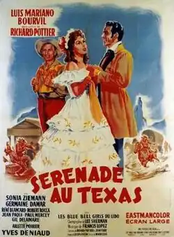 Serenade of Texas (French: Sérénade au Texas) is a 1958 French musical western film, directed by Richard Pottier and starring Luis Mariano, Bourvil and Germaine Damar.[1] In the 1890s, a Frenchman discovers that he has inherited property in a rowdy Texas town.