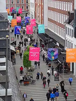 Søndergade or Strøget is a street in Aarhus, Denmark. It is located in the inner city neighborhood and runs 350 metres south to north from Ryesgade to Skt. Clemens Stræde and provides access to the alleys Telefonsmøgen and Posthussmøgen. Søndergade was created between 1854 and up through the 1860s as the city expanded southwards following the abolition of octroi and the city walls. The word Sønder is an older Danish form of "south" and the name thus means "Southward-street".[1] Søndergade is part of the 750 meters long shopping street and pedestrian zone Strøget which runs from Aarhus Central Station to Aarhus Cathedral, consisting of the three streets Søndergade, St. Clemens Street and Ryesgade.[2]