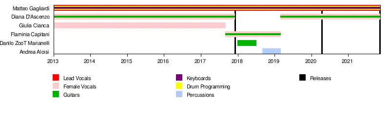 - Matteo Gagliardi – vocals, keyboards, drum programming (2013–2021)