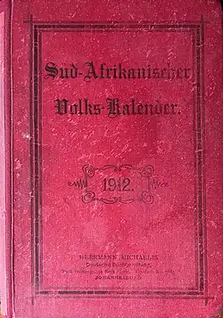 - Süd-Afrikanischer Volks-Kalender 1912. Authored by Hermann Michaelis.The first edition was almost 400 pages long [10]