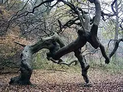 The Süntel is covered by mixed woods which are dominated by beech, but also has other species such as oak, spruce, hornbeam and coast Douglas-fir and rarer types like the yew and wild service tree. A botanic rarity is the dwarf beech (known in German as the Süntel-Buche or "Süntel beech") of which there are about a dozen old examples still in the Süntel (at Dachtelfeld and Bleeksgrund). The last great dwarf beech wood on the Westeregge was almost completely cleared in 1843. In addition there are numerous, rare species of flower such as varieties of Primula, spring snowflake, horseshoe vetch, hart's-tongue fern, spleenwort, lady's slipper, heath spotted orchid, etc.