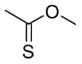The constitutional isomer in which the oxygen and sulfur atoms are interchanged, O-methyl thioacetate, is also known as methyl thioacetate. It is not found in nature. It has mainly been the subject of theoretical studies.[6]