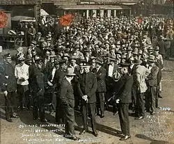 Strikes and industrial unrest were frequent in the aftermath of World War I, arising from discontent over poor conditions and the rise of militant labour organisations like the Communist Party of Australia and the Industrial Workers of the World.[113] The problems were made worse in Australia due to the overlapping system of industrial courts that had evolved since Federation.[114] Although federal arbitration was intended for industrial disputes that impacted upon multiple states or federal employees, courts had through several judgments greatly expanded the potential jurisdiction of federal arbitration, and the system had developed into a duality with both state and federal tribunals weighing into a wide range of industrial disputes.[114] This was exploited by both unions and employers, who pursued matters in the courts they felt most likely to be favourable and switched between different jurisdictions to arrive at the best combination of state and federal conditions.[115] Protracted disputes arose as employers and employees pursued disputes in different courts or refused to recognise the rulings of one in favour of the other. Billy Hughes and several of his predecessors had sought resolution to the problem through greater Commonwealth powers, but all referendums to expand Commonwealth industrial powers had failed at the ballot box.[114]