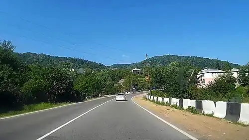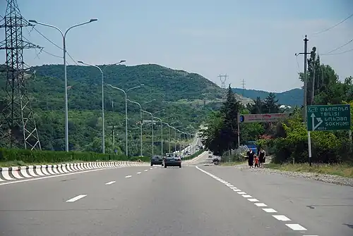 The Georgian S1 route (Georgian: ს1, also known as Tbilisi-Senaki-Leselidze), is a "road of international importance" with a registered length of 542.7 kilometres (337.2 mi) within the Georgian classification system, which makes it the longest Georgian highway route.[1] It runs from Tbilisi via Mtskheta, Gori, Khashuri, Zestaponi, Kutaisi, Samtredia, Senaki, Zugdidi, Sukhumi and Gagra to the border with Russia near Leselidze at the northwestern tip of the country, covering in practice 537 kilometres (334 mi). After crossing the Georgia–Russia border in breakaway Abkhazia, the highway continues to Sochi and Krasnodar as A147. It is part of European E60, E97 and E117 routes and Asian Highways AH5, AH81 and AH82, and connects with six other S-routes.