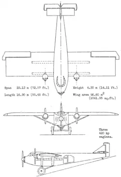- Powerplant: 3 × SABCA Jupiter nine-cylinder air-cooled radial piston engines, 310 kW (420 hp) each
