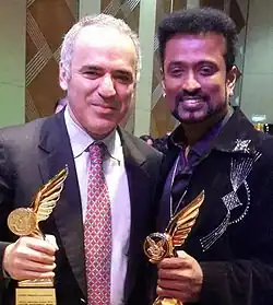 ![]() SAC Vasanth(Right) with Garry Kasparov(Left) in 'Global Leadership Awards 2014' | |