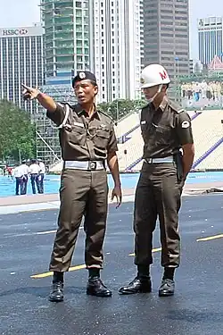 The Support Company has a Presidential Guards Platoon that serves as ceremonial sentries at the Istana, as well as performing the guard mounting ceremony outside the Istana on the first Sunday of every month. The platoon's members are also trained in Silent Precision Drills, and form the Silent Precision Drill Squad (SPDS) which performs at the monthly Istana Change of Guards ceremony, as well as the National Day Parade and international military tattoos.[4] The support company also includes a Traffic Platoon that performs escort duties and conducts patrols to ensure that SAF personnel driving military vehicles comply with traffic regulations. It also has a Security Operations Detachment that works closely with the Singapore Police Force to arrest SAF personnel who have deserted or gone AWOL or committed other military offences.[4] It has an Escort and Processing Office Platoon in charge of registering and detaining suspects in holding cells at Mowbray Camp.