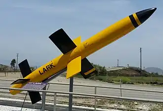 The SAM-N-2 Lark project was a solid-fuel boosted, liquid-fueled surface-to-air missile developed by the United States Navy to meet the kamikaze threat. It was developed as a crash program to introduce a medium-range defensive layer that would attack targets between the long-range combat air patrols and short-range anti-aircraft artillery. This produced a design with roughly 30 miles (48 km) maximum range and subsonic performance, suitable for attacks against Japanese aircraft.