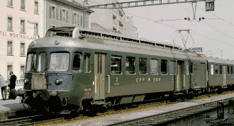 The BDe 4/4 II were electric multiple units ("EMUs") specially built in the 1950s for the CFF line La-Plaine - Geneva.[1] The line was electrified not to Swiss standard (15 kV 16.7 Hz AC), but to the Southern French 1.5 kV DC standard, so standard rolling stock could not be used.