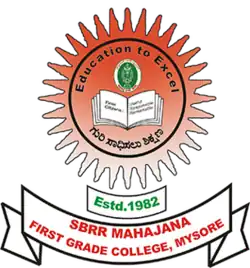 SBRR Mahajana First Grade College (Autonomous) Jayalakshmipuram, Mysore is a College with Potential for Excellence[3] accredited A Grade by N.A.A.C. (National Assessment and Accreditation Council)[4] during its 3rd Cycle and affiliated to University of Mysore.[5] The college was founded in 1982 as a women's college offering B.A. & B.Com. courses. It was admitted to the grant-in-aid in 1987 and in 1988 became a co-educational institution. B.Sc. course was introduced in 1989, BBM course & Bio-technology, Biochemistry & Microbiology combination in B.Sc.[6] were added in 1994 & 2004 respectively. BCA course was introduced in 2009. The College has applied for Autonomy and got the Autonomous status in 2019 from Mysore University. [7] [8] [9] [10] [11]