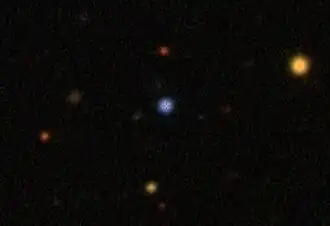 SBSS 0953+549 also known as SBS 0953+549 and QSO J0957+5440, is a quasar located in the constellation of Ursa Major. With a redshift of 2.58, the object is located approximately 10.8 billion light-years away from Earth.[1] It is classified as a broad absorption-line quasar (BAL QSO) by the Sloan Digital Sky Survey.[2] It was first studied in the 1980s as part of the Second Byurakan Survey.[3]