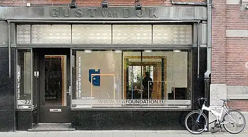 SEA Foundation is located on the Tivolistraat, in the city center of Tilburg. The building where the SEA Foundation is housed originally belonged to the Tilburg-based tobacco merchant Gust van Dijk (1884–1977). In the 1930s, Gust van Dijk commissioned the construction of a retail residence in the style of the New Objectivity, on the former Bosscheweg in Tilburg. The building includes a gallery on the ground floor and two Artist in Residence studios to facilitate professional artists, curators and writers.