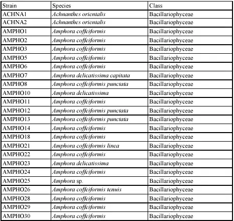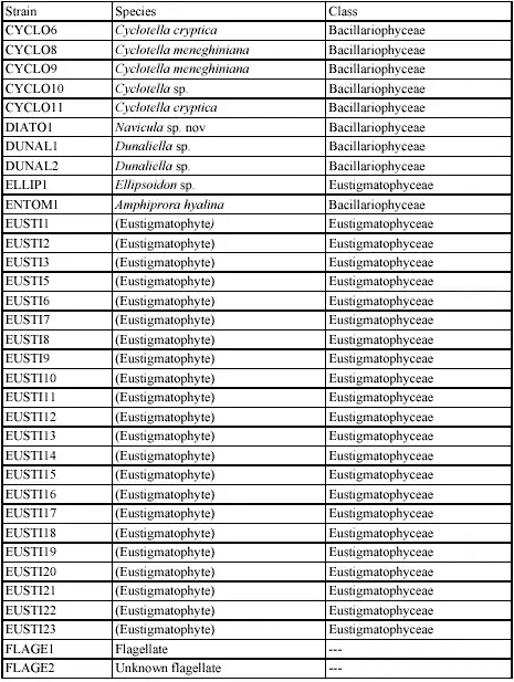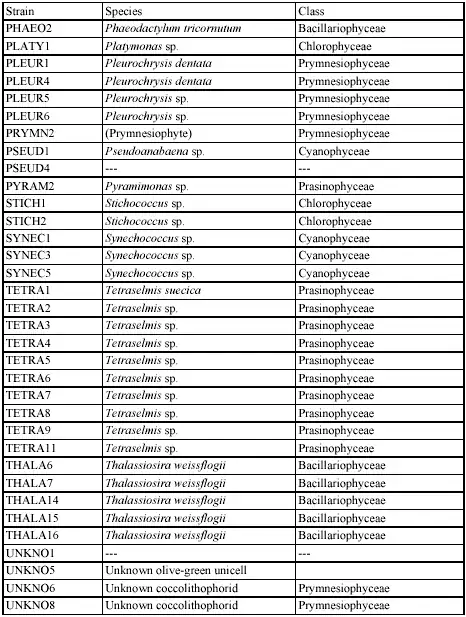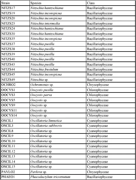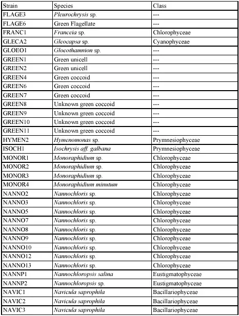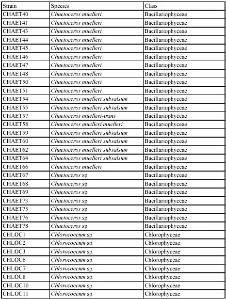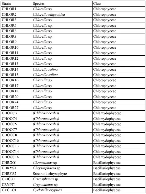 Below is a list of the algal-strains in the microalgae culture collection from the closeout report of the Department of Energy's Aquatic Species Program.
