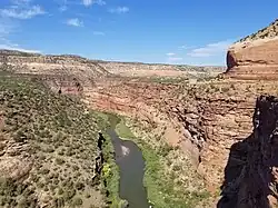 State Highway 141 (SH 141) is a 162.297 mi (261.192 km) long state highway in far western Colorado, United States. Though nominally oriented north–south, SH 141 winds around a considerable amount due to the rugged terrain and ultimately forms a giant S shape. SH 141's southern terminus is at U.S. Route 491 (US 491) near Dove Creek, and the northern terminus is at Interstate 70 Business (I-70 Bus.) in Grand Junction. SH 141 is the longest three-digit state highway in Colorado.