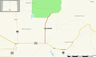 ![]() Map of Alamosa County in southern Colorado with SH 150 highlighted in red | ||||