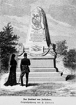 The lives lost in the sinking of the Grosser Kurfürst are commemorated by a large stone obelisk erected at the Cheriton Road Cemetery in Folkestone,[28] which was erected on 12 January 1881. The sail training ship Niobe had brought it from Germany. Another monument was placed in front of the barracks of I. Seebataillon to memorialize the naval infantry who had died in the sinking.[14]