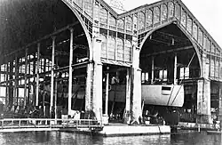 The Zentas' main battery consisted of eight 40-caliber 12-centimeter (4.7 in) quick-firing guns manufactured by Škoda. One gun was mounted on the upper deck forward, six in casemates in the hull, and the remaining gun was placed on the upper deck aft. They also carried eight 44-caliber 47-millimeter (1.9 in) Škoda guns and two 33-caliber 47 mm Hotchkiss guns for defense against torpedo boats. These guns were all mounted individually, with four in the superstructure and the rest in casemates in the hull. The ships also carried a pair of 8 mm (0.31 in) Salvator-Dormus M1893 machine guns. Their armament was rounded out with a pair of 45 cm (17.7 in) torpedo tubes that were carried in the hull above the waterline.[3][5][6] The three Zenta-class cruisers were the first major Austro-Hungarian warships to carry an armament entirely manufactured by Škoda.[7]
