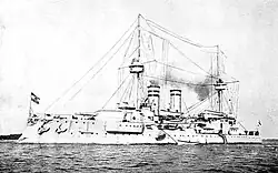 Wörth and the rest of the fleet operated under the normal routine of individual and unit training in the first half of 1897.[17] The ship represented Germany during the Fleet Review for Queen Victoria's Diamond Jubilee in June 1897.[18] The typical routine was interrupted in early August when Wilhelm II and Augusta went to visit the Russian imperial court at Kronstadt; both divisions of I Squadron were sent to accompany the Kaiser. They returned to Neufahrwasser in Danzig on 15 August, where the rest of the fleet joined them for the annual autumn maneuvers. The maneuvers were completed by 22 September in Wilhelmshaven. In early December, I Division conducted maneuvers in the Kattegat and the Skagerrak, but they were cut short due to shortages in officers and men.[19]