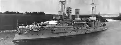 Wörth and the rest of the squadron attended ceremonies for the Kaiser Wilhelm Canal at Kiel on 3 December 1894.[8] The squadron subsequently began a winter training cruise in the Baltic Sea; this was the first such cruise by the German fleet. In previous years, the bulk of the fleet was deactivated for the winter months. I Division anchored in Stockholm from 7 to 11 December, during the 300th anniversary of the birth of Swedish king Gustavus Adolphus. Further exercises were conducted in the Baltic before the ships had to put into their home ports for repairs.[8] From 19 December to 27 March 1895, Wörth returned to her old duty as fleet flagship while Kurfürst Friedrich Wilhelm was in dock for repairs.[11] The ship was occupied with individual and divisional training in early 1895. In May, more fleet maneuvers were carried out in the western Baltic, concluding with a visit by the fleet to Kirkwall in Orkney. The squadron returned to Kiel in early June, where preparations were underway for the opening of the Kaiser Wilhelm Canal. Tactical exercises were carried out in Kiel Bay in the presence of foreign delegations to the opening ceremony.[12]