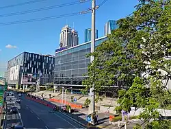 Building C is a 11-storey mixed-use building that houses office spaces on the upper levels from the eight floor to the eleventh floor, which are entirely occupied by Concentrix; carpark spaces from the building's second level to the sixth level; and a transport terminal at the ground level, which includes an integrated bus terminal for point-to-point buses plying Batangas and Alabang and minibuses plying Binangonan, respectively. The terminal was previously served by city buses plying EDSA prior to the introduction of EDSA Busway system in 2020.[11] Formerly Building A's open-parking facility, it is located near EDSA to the west of Building A and was opened on October 11, 2011. The building also contains the 1,300-square-meter (14,000 sq ft) DFA CO NCR-East, the first passport office of the Department of Foreign Affairs in Metro Manila which opened in August 2012.[12]