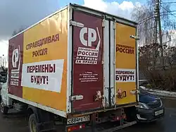 A van advertising the Just Russia political party, Ryazan. The sides read: "There will be changes!"