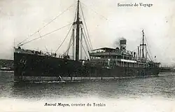 Amiral Magon was built as an ocean liner for service between France and French Indochina. The ship was operational between 1905 and 1914, when she was requisitioned by the French Army and converted into a hospital ship in 1914 and later into a troopship for use in World War I.
